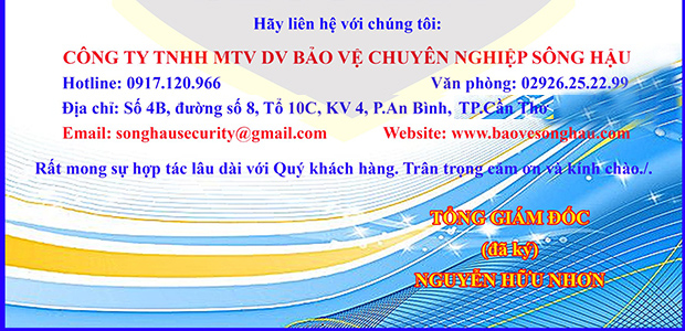 CTY TNHH MTV DV BẢO VỆ CHUYÊN NGHIỆP SÔNG HẬU